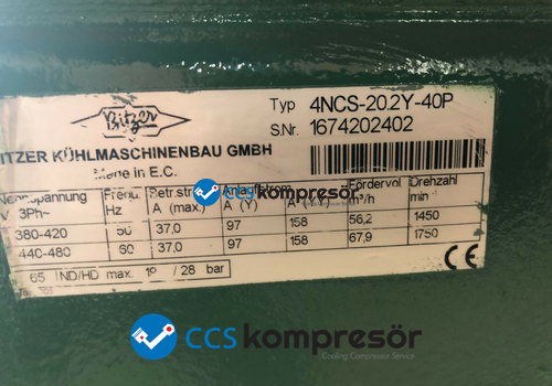 Marka : Bitzer Model : 4NCS-20.2Y Gaz : R134a - R407C - R404A - R507A - R407A - R407F Güç : 20 Hp Revizyon Tarihi : 2018